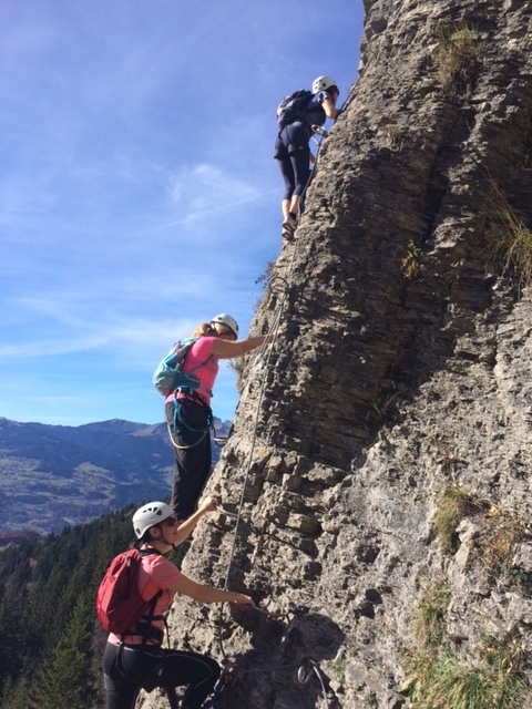 On Sunday 8th November we kick started our training with a via feratta close to Chamonix. This got us out of our comfort zone and allowed for some excellent team bonding! As we were hiring the gear we were warned about the "vide" (void). Naturally, this evoked some initial trepidation but we very quickly embraced the void and our team name was born -"Rock the Vide". Watch this space....